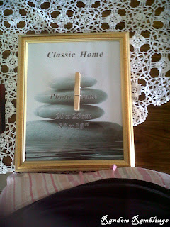 I attached a little bit of ribbon to the envelope, put the extra cards inside and hung it on the picture hanging attachment on the back of my frame: